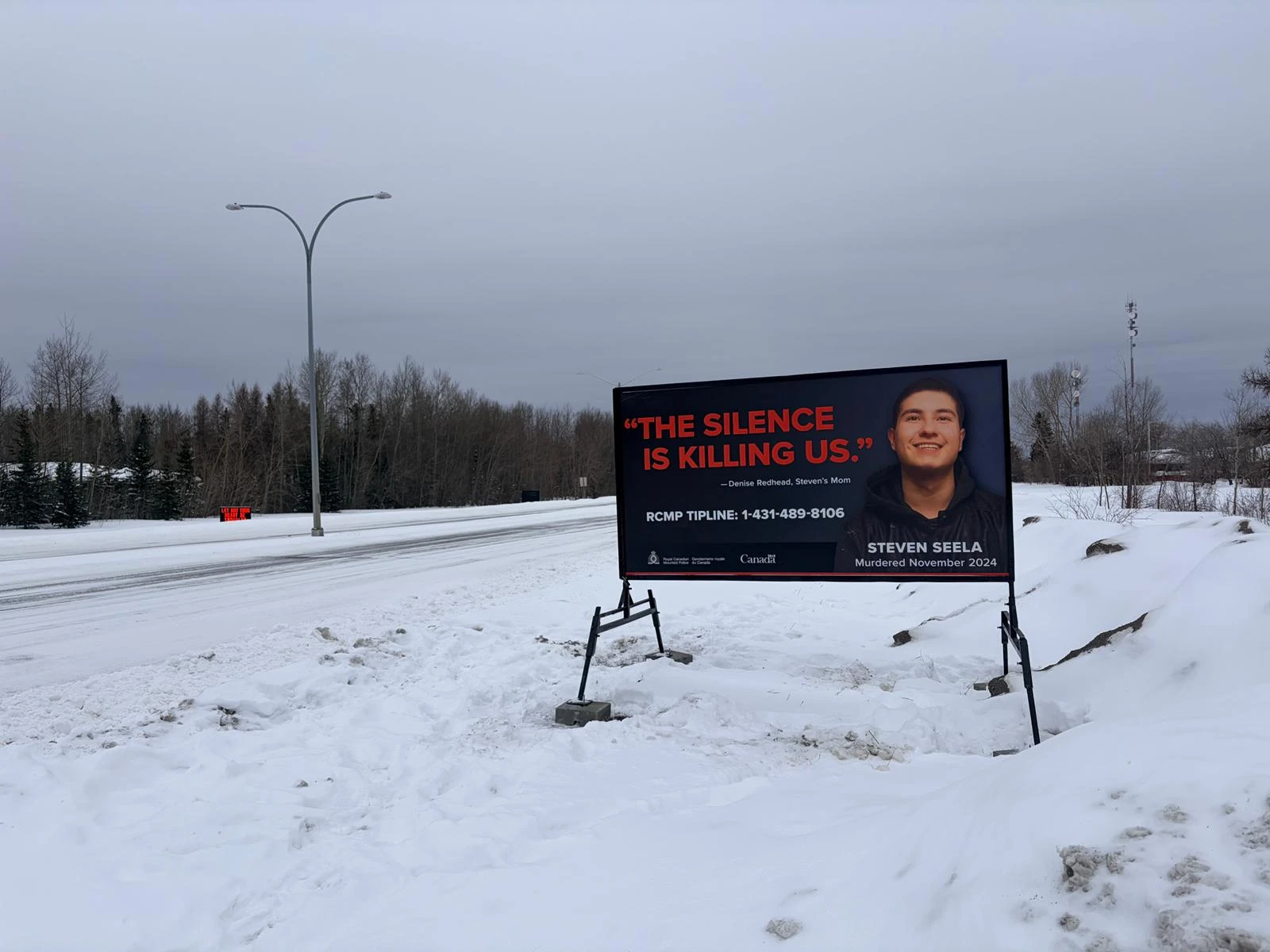 Last week, the Manitoba RCMP placed billboards and posters in various locations across Thompson to raise awareness about the unsolved case of Steven Seela who was murdered in Thompson in November of 2024.