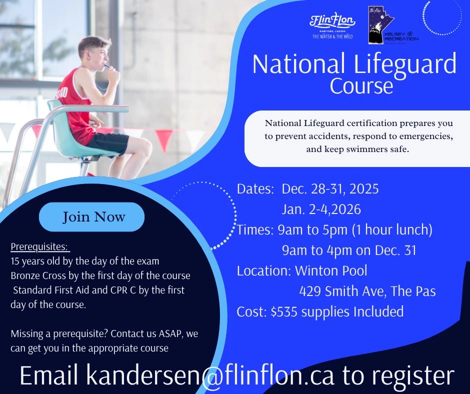 Flin Flon Parks and Rec in conjunction with Kelsey Rec are holding some National Lifeguard courses.
