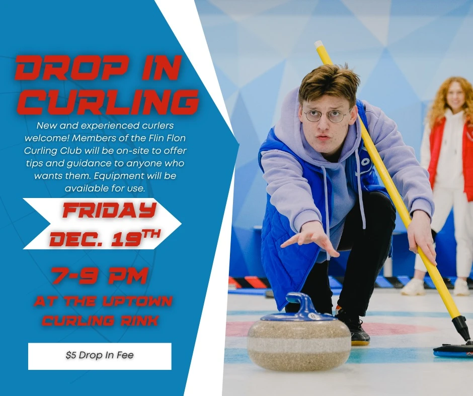 If you would like to try something new or rediscover the great sport of Curling , you are invited to drop by the Uptown Curling Rink on Friday December the 19th.