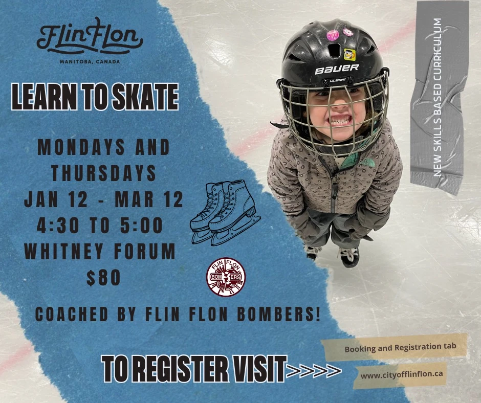 The Flin Flon Bombers will be holding a Learn To Skate program Mondays and Thursdays, January the 12th to March 12th.