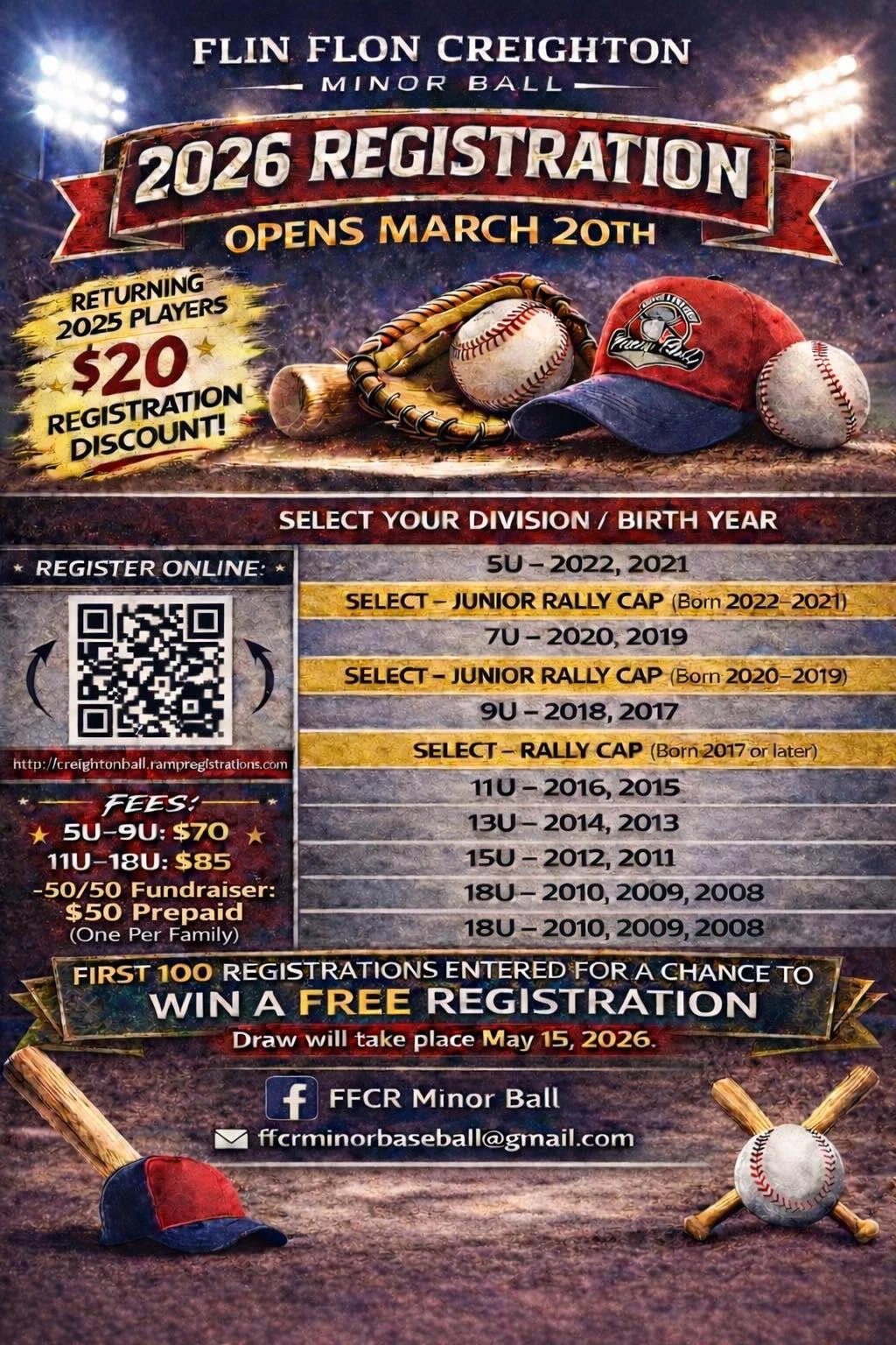 Registration will open up online on March the 20th and there will be a $20.00 discount for all players returning from 2025.