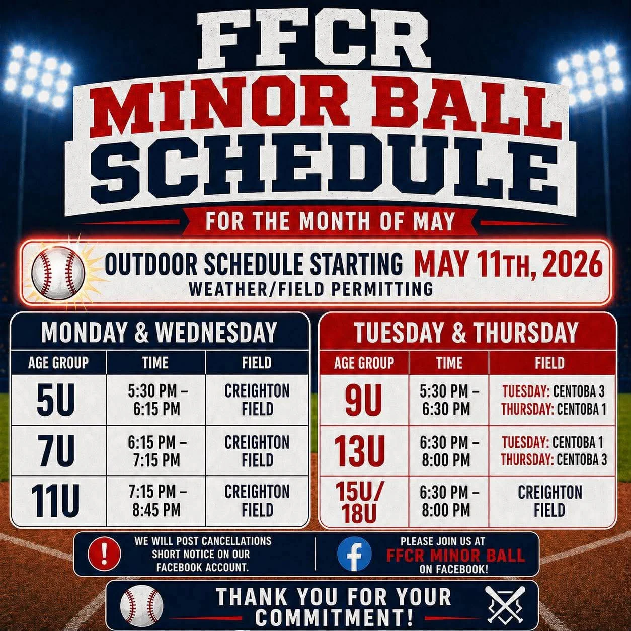 Information throughout the year including cancellations will all be posted on their facebook page. Don't forget registration continues til May the 15th at ffcrminorbaseball@gmail.com.