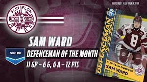 They are getting contributions from everyone including 20 year old defenseman Sam Ward who arrived from the WHL in early October and has just been selected the Super U Defenseman Of The Month.